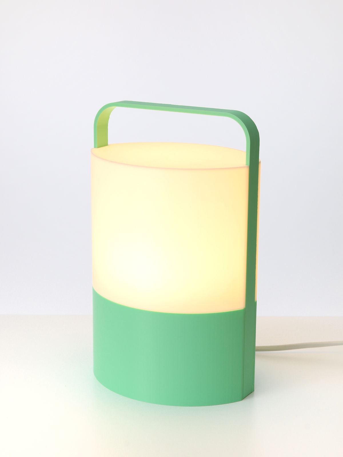 Velador minimalista de estilo contemporáneo. Su diseño geométrico simple le imprime un carácter sobrio y limpio, mientras que su cinta envolvente completa su personalidad y facilita su uso.
